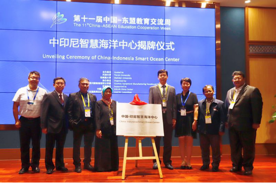 随后在现场嘉宾的见证下,中国-东盟能力建设中心与中国—印尼尼智慧海洋中心在各位领导与嘉宾的见证下,正式揭牌成立。其中,中国-东盟能力建设中心由天津大学和泰国玛希隆大学共同牵头成立,旨在通过开展高端系列讲座、论坛、人员培训等方式,整合中方与东盟方高校的优势资源,为深化合作提供坚实基础。中国—印尼智慧海洋中心由天津大学海洋科学与技术学院牵头,合作方为印尼泗水理工学院等印尼高校,旨在促进双方对于海洋资源的开发,海底未知世界的探索,海洋污染的治理以及维护海洋周边区域的和平稳定等领域的合作。