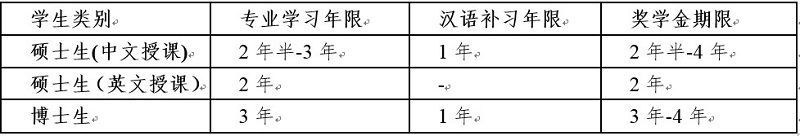奖学金期限为录取时确定的学习年限,原则上不予延长。汉语零起点者在天津大学国际教育学院要进行一年的汉语补习。