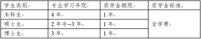 奖学金标准:一等奖学金(包括学费及生活费);二等奖学金(包括学费)。