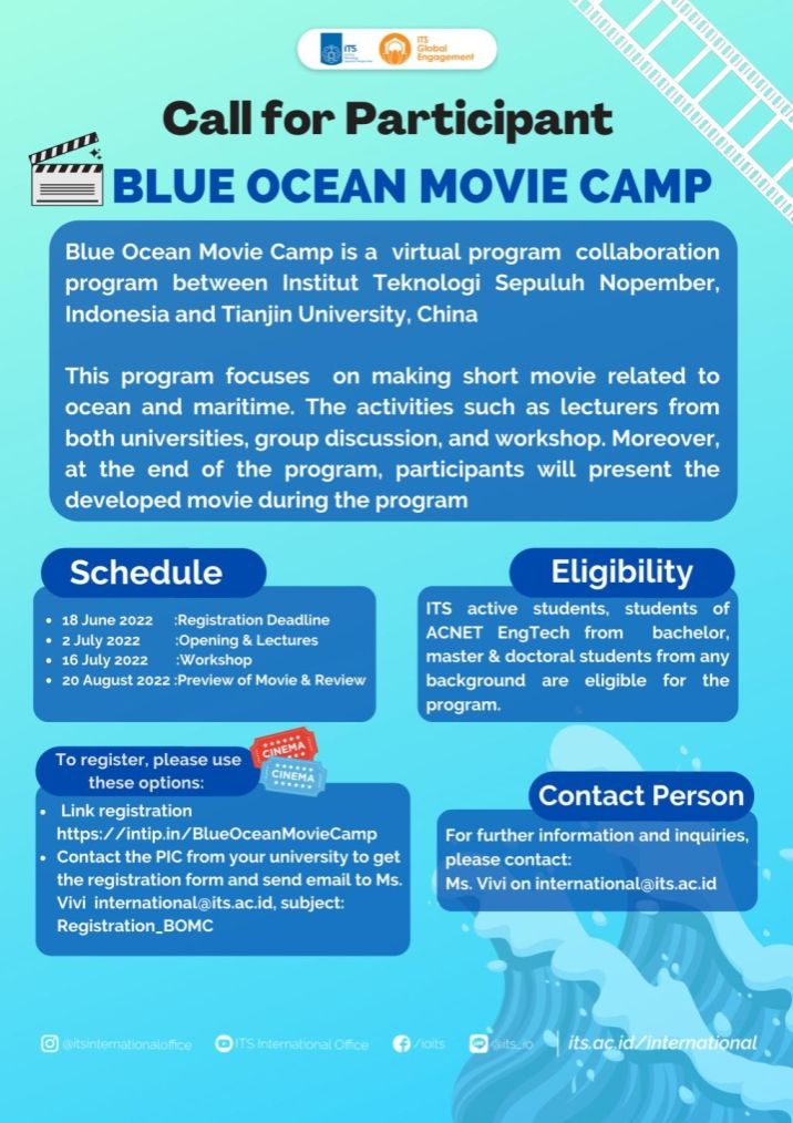 Any further question regarding the program, please contact 1)Ms. Vivi:international@its.ac.id 2) Ms. Zhang:marine@tju.edu.cn